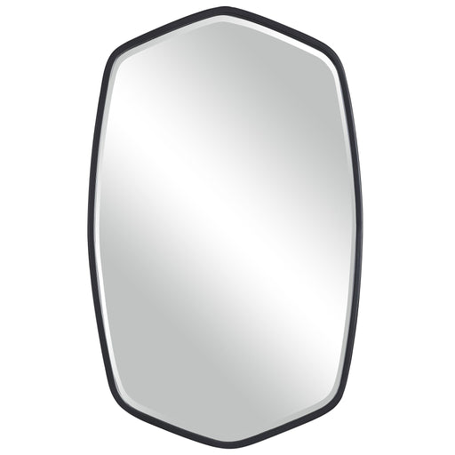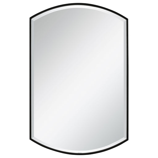 UttermostSimple Yet Versatile, This Mirror Features A Curved Iron Frame With A Sleek Satin Black Finish And A Generous 1 1/4" Bevel. Shield - Shaped Iron Mi...