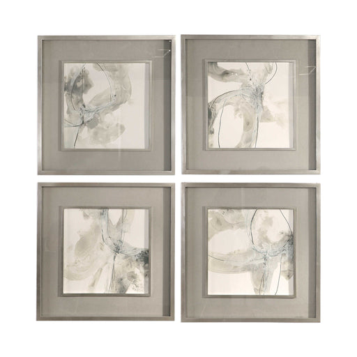 Tangled Threads - Abstract Framed Prints (Set of 4) - Pearl Silver