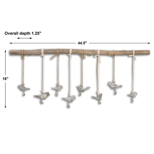UttermostSmall Metal Birds Finished In A Dark Bronze With A Light Ivory Glaze Suspended From A Natural Elm Branch With Ivory Ribbon And Natural Rope. Each B...