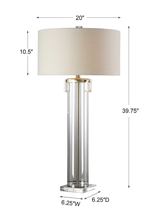 UttermostThis Substantial Lamp Features A Clear Acrylic Tall Cylinder, Accented With Light Champagne-nickel Plated Details And A Thick Crystal Foot. The Rou...