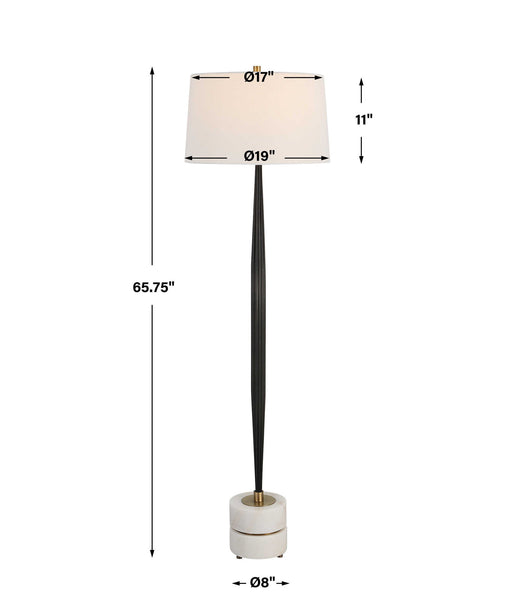 UttermostThe Miraz Lamp Oozes Sophistication With Its Channeled Cast Iron Base, Brushed Brass Accents, And A Considerable White Marble Foot. The Tapered Har...