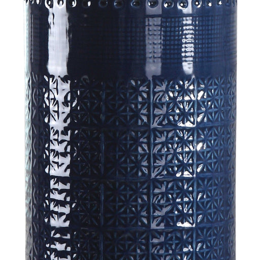 UttermostIntricately Embossed Ceramic Finished In A Royal Blue Glaze, Accented With Brushed Nickel Plated Details. The Round Hardback Drum Shade Is A White ...