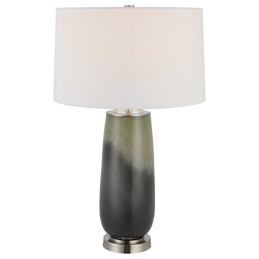 UttermostThis Elegant Table Lamp Features A Beautiful Speckled Green And Gray-blue Ombre Glass Base With Crystal Accents And Brushed Nickel Finished Iron De...