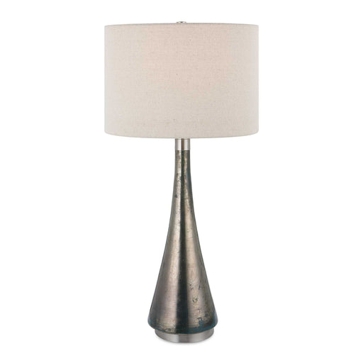 UttermostThis Table Lamp Features A Graceful Tapered Base Crafted From Artisanal Blue-green Metallic Glass. Iron Accents Are Finished In Brushed Nickel. The...