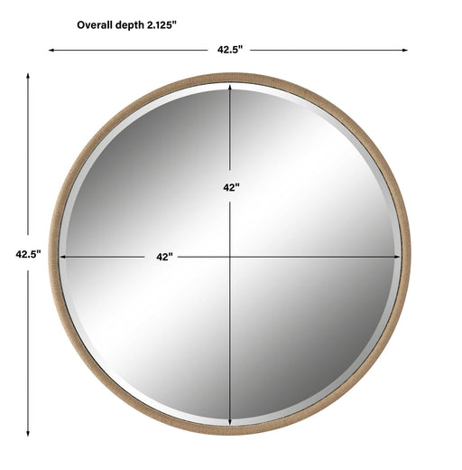 UttermostThe Ranchero Round Mirror Adds Rustic Flair With A Black Iron Frame Featuring A Rounded Profile Wrapped In Natural Braided Rope. Mirror Has A 1 1/4...