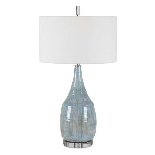 UttermostThis Table Lamp Design Features A Ceramic Base With A Global, Bohemian Flair, Finished In A Light Aqua Blue Crackle Glaze With A Light Gray Texture...