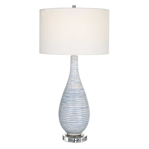 UttermostInspired By Old World Pottery, This Ceramic Table Lamp Features Scalloped Channels With Organic Striped Texture, Finished In A Light Cornflower Blu...