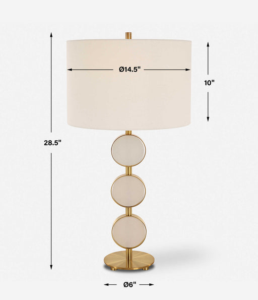 UttermostThis Table Lamp Brings A Soft Contemporary Flair To Any Room By Featuring Three Suspended Alabaster Disk Surrounded By A Sleek Metal Base Finished ...