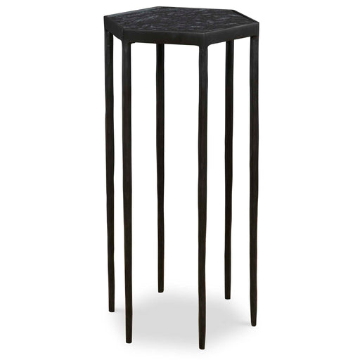 UttermostThis Striking Hexagonal Table Features A Chiseled Iron Base Finished In Satin Black Paired With A Honed Black Marble Top With Natural White Veining...