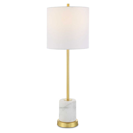 UttermostThis Versatile Buffet Lamp Showcases A Slim Plated Brushed Brass Metal Base Accented By A Large White Marble Block Foot With Natural Veining. The S...