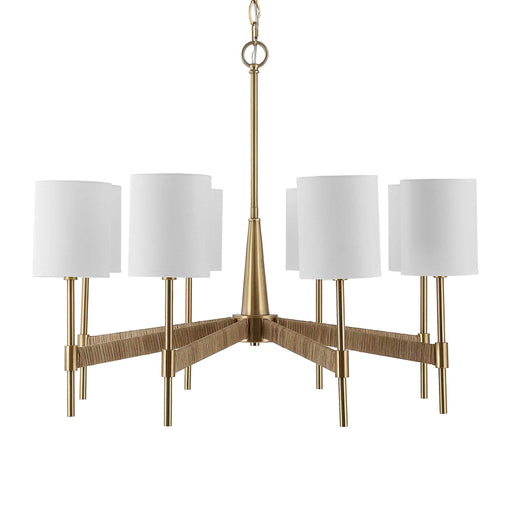 UttermostA Sophisticated Casual 8 Lt Chandelier Featuring Rattan Wrapped Arms Dressed Up In A Warm Brass Finish Complimented With White Linen Hardback Fabri...