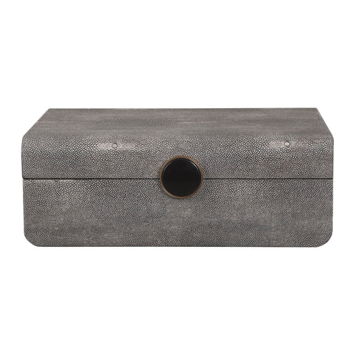UttermostInspired By The Art Deco Era, This Decorative Box Showcases A Faux Smoke Gray Shagreen Wrapped Surface Accented By A Brushed Antique Brass And Blac...