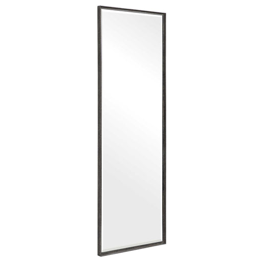 UttermostThis Simple Vanity Mirror Features An Iron Construction With Detailed Edges. The Slight Profile Frame Is Finished In A Distressed Rustic Black With...