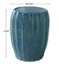 Striking And Multifunctional, This Ceramic Garden Stool Features A Fun Scalloped Edge With Hand Carved Geometric Details Finished In A Striking Aqua Blue Glaze. May Be Used Outdoors, But Protection From Freezing Temperatures Is Recommended.