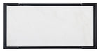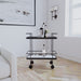 Industrial meets organic with the Commerce & Market bar cart. Offering a youthful sensibility and simple aesthetic, the bar cart combines a black metal frame and casters with a stone inlay top and bottom shelf.