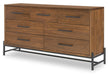 The Midland total home collection offers a heartland-inspired, feel-good casual look that seamlessly blends styles from casual transitional to modern, and from Craftsman to Boho. Featuring a Warm Amber finish and Matte Black hardware, each piece is crafted from Hardwood Solids and Walnut. A standout element of the collection is the wood basket weave design, elegantly showcased on chair backs, door fronts, and the panel headboard. With a young and fresh vibe, the collection includes bedroom, dining, occasional, home office, and home entertainment.