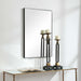 This thin black frame with plain mirror creates a simple, clean design. It is perfect over a bathroom vanity or wherever you want an updated, contemporary look. May be hung either vertically or horizontally.
